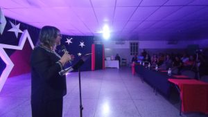 Previamente, la cantante Alba Patricia Arévalo realizó una presentación como parte del programa del evento, deleitando a los presentes con su voz, carisma y talento.