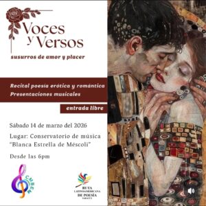Para este sábado 14 de marzo, a las 6:00 de la tarde, la Ruta Latinoamericana de Poesía Yaracuy y el Conservatorio de Música Blanca Estrella de Méscoli” (CMBEM) presentarán el recital poético “Voces y Versos: Susurros de Amor y Placer”.